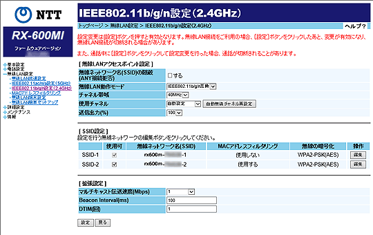 IEEE802.11b/g/n設定(2.4GHz)