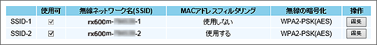 - 編集したいSSIDの「操作」欄の[編集]をクリックする
