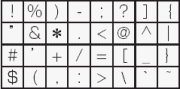 - 英数記号(0~9、a~z、A~Z、下表の記号)