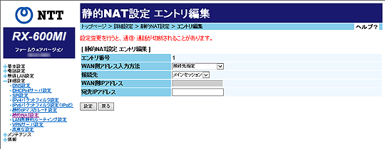 [静的NATエントリ編集]
