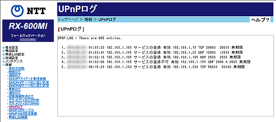ログ内容によりUPnPの状態変化を知ることができます。