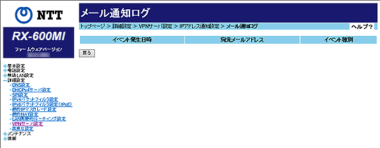 VPNサーバ設定-IPアドレス通知設定-メール通知ログ