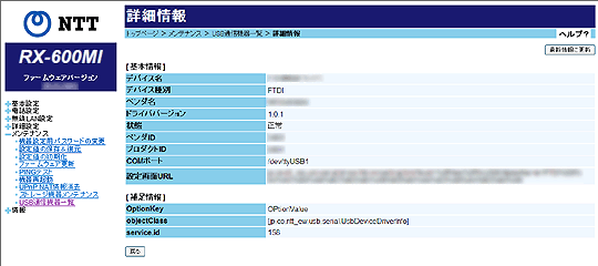 ※ご利用のUSB通信機機器により表示される項目が異なることがあります。