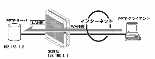 本商品に接続したPPTPクライアントからPPTPサーバに接続する