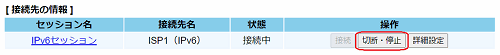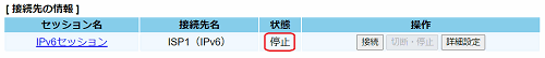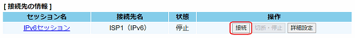 設定された接続先について「基本設定」-「接続先設定(IPv6 PPPoE)」で接続/切断できます。