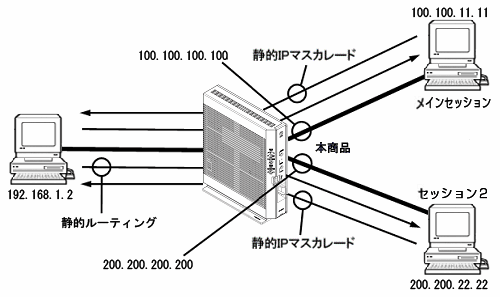 上記のような設定を行った場合には、『200.200.22.0/24』のネットワークに属する端末からは、本商品内のWeb サーバ(LAN側、IPアドレスは『192.168.1.2』と直接通信することが可能です。