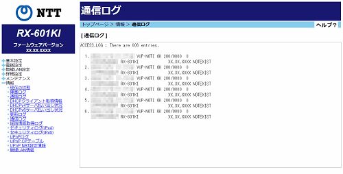 (「設定値の初期化」で完全初期化を行った際の再起動は、ログもクリアされますので、保存されません。) - 最大件数を超えたログは古いものから順に上書きされます。