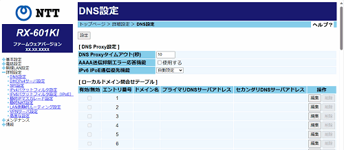 IPv4 PPPoE側へのAAAA問合せが発生した場合に、proxyせずに送信元端末に空の応答を返答する機能です。本機能を使用する場合はチェックします。