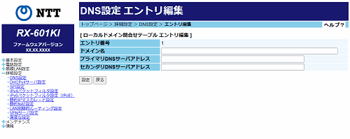 [ローカルドメイン問合せテーブル エントリ編集]