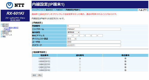 内線設定(IP端末)