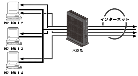 LAN側からWAN側へのパケットのうち、上記の「接続ルール設定」で設定した条件と一致するパケットおよびその応答パケットは、その条件の一致したセッションのアカウントを使って接続します。