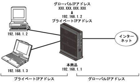 IPマスカレードとは、1つのグローバルIPアドレスを利用して、LAN内のプライベートIPアドレスを持つ複数のパソコンなどをインターネットに接続できる機能です。IPマスカレードの場合は、WAN側からLAN側のパソコンなどのいずれかを指定してアクセスを開始することはできません。