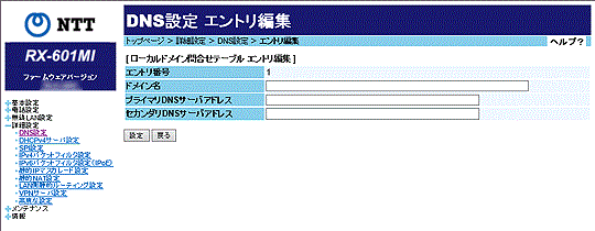 [ローカルドメイン問合せテーブル エントリ編集]