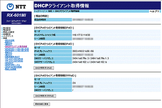 [DHCPv6クライアント取得情報(IPoE)]