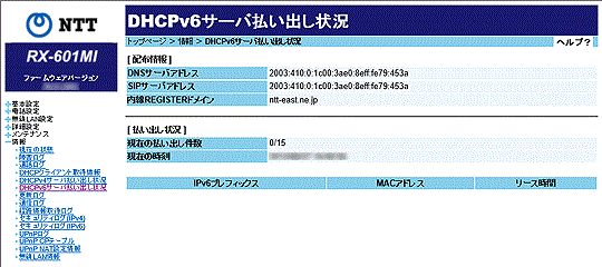 DHCPv6サーバのDNSサーバアドレスを表示します。