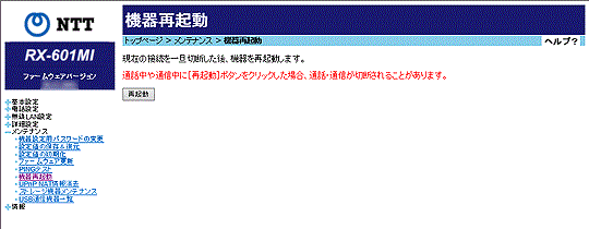 本商品では、Webブラウザから本商品の再起動を行うことができます。