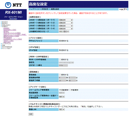 - 「UPnP設定」を「使用する」に設定した場合は、「基本設定」-「接続先設定(IPv4 PPPoE)」の「UPnP優先」で接続先を選択し、設定してください。