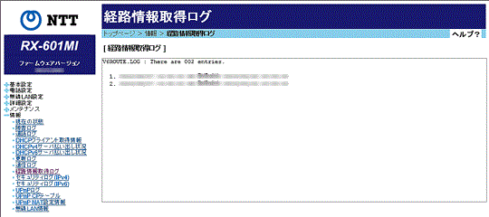 本商品と経路情報提供サーバとの通信ログが表示されます。