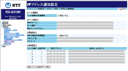 本商品にVPN接続する通信機器端末宛にVPNの接続先情報として本商品のIPアドレスを電子メールで通知する機能です。
