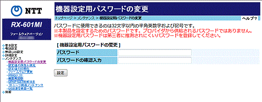 その場合は、その都度、変更後のパスワードを入力してください。 - 機器設定用パスワードは第三者に推測されにくいパスワードを登録してください。