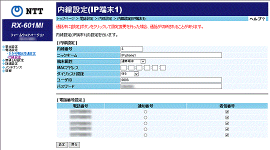 ご契約された電話番号(外線番号)のうち、この電話機に着信させる電話番号を設定します。