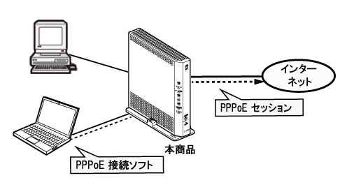 - パソコンのOSに標準搭載のPPPoE機能を使用して、インターネットなどに直接接続できます。