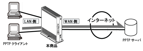 本商品に接続したPPTPクライアントからPPTPサーバに接続する