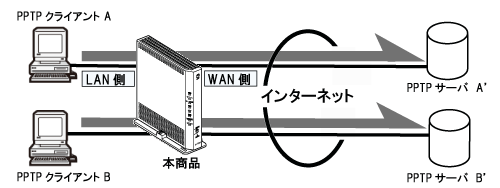 本商品に接続したPPTPクライアントからそれぞれ別のPPTPサーバに接続する