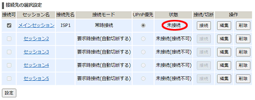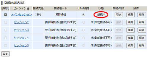 ※ 本商品の工場出荷状態では、[メインセッション]が「UPnP優先」になっています。