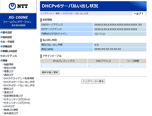 DHCPv6サーバ払い出し状況を表示します。