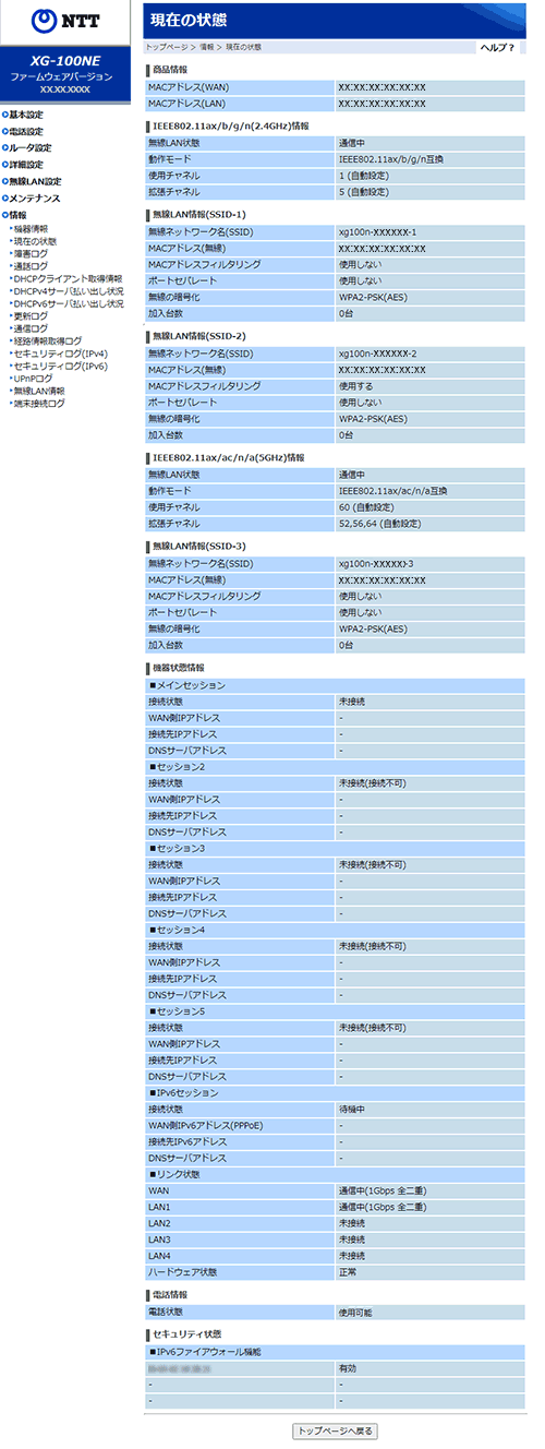 - 現在の「IPv6セッション」の接続状態を表示します。
