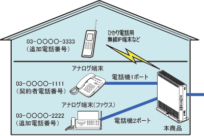 ※ 本商品にIP端末(音声)を接続するには、ひかり電話用無線IP端末などのIP端末(音声)が必要です。