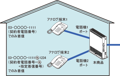 「03-○○○○-1111」でかかってきた場合は、アナログ端末1のみ着信させる。