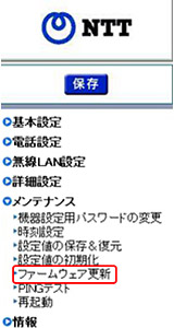 - 「メンテナンス」から「ファームウェアの更新」を選択します。