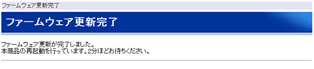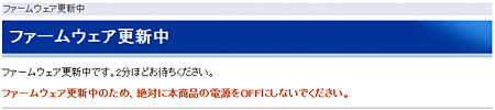 - ファームアップ中は以下の画面が表示されます。ファームウェア更新完了するまで電源を抜かずにお待ちください。