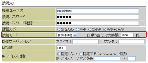 接続先2~5の接続モード:要求時接続(自動切断までの時間;1800s)