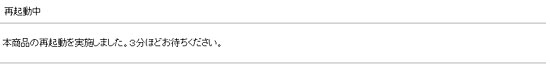 - ファームアップ中は以下の画面が表示されます。ファームウェア更新完了するまで電源を抜かずにお待ちください。