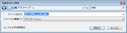 - 「名前を付けて保存」の画面が表示されますので、「SC-32NE_x.xE.exe」を保存する場所を指定し、[保存]ボタンをクリックします。
