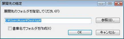 なお、下図の「展開先の指定」画面が表示される前に、「セキュリティの警告画面」が表示された場合は「実行」をクリックします。