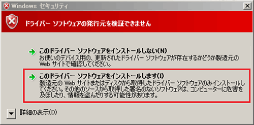 - 本ドライバをインストール頂く際に以下のセキュリティダイアログが表示される場合がございます。