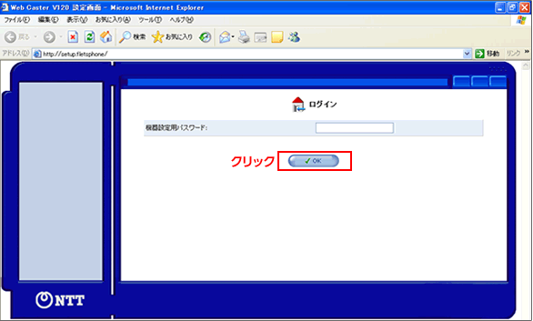 「機器設定用パスワード」※1を入力し「OK」をクリック
