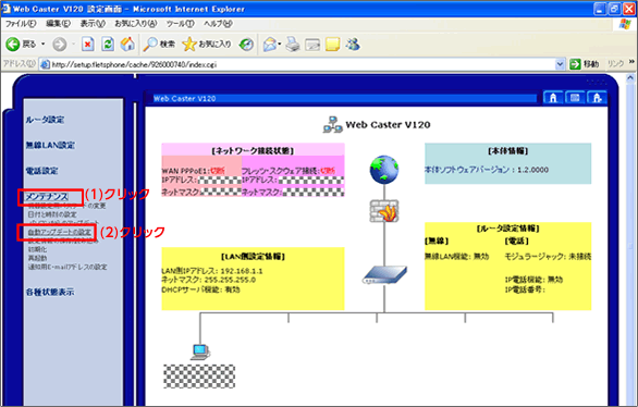 「メンテナンス」-「自動アップデートの設定」の順にクリック