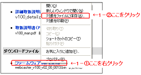 - 以下のファームウェアを右クリックして、「保存」を選択し、ご利用のPCにダウンロードします。