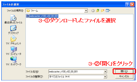 - ダウンロードしたファイルを指定します。