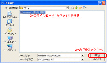 - ダウンロードしたファイルを指定します。