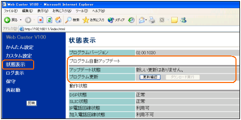 - 設定画面左側のメニューから、「状態表示」をクリックします。