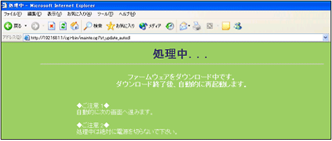 - バージョンアップ処理中は絶対に電源を切らないでください。