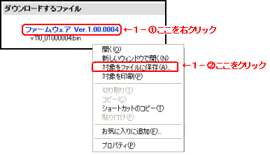 - 以下のソフトウェア(ファームウェア)を右クリックして、「保存」を選択し、ご利用のPCにダウンロードします。