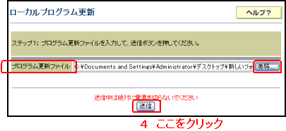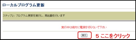 - プログラム更新画面が表示されるので、「実行」 をクリックします。