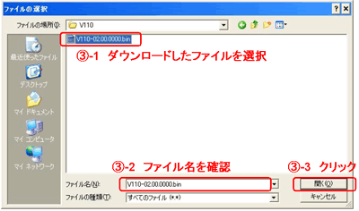 - ダウンロードしたファイルを指定します。